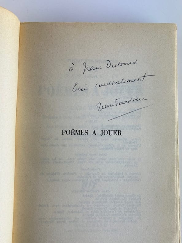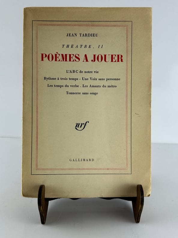 Edition originale collective sur papier courant. Précieux envoi autographe signé de Jean Tardieu : "A Jacques Hébertot au pionnier toujours jeune du théâtre nouveau, bien amicalement. Jean Tardieu." Agréable exemplaire. - Photographies et détails sur www.Edition-Originale.com -