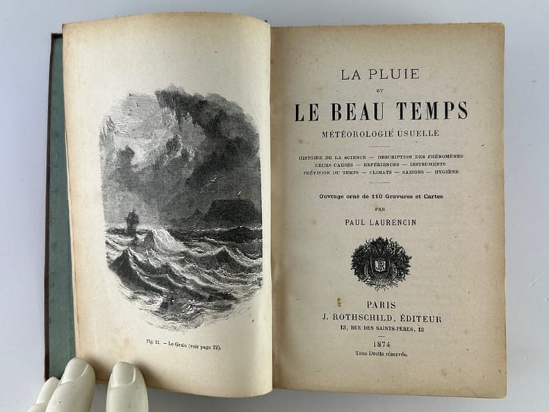 Paris J. Rothschild, Editeur 1874, 10 x 16 cm, cartonnage éditeur, pleine lustrine marron, décorée d'un appareil de mesure sur le premier plat, 344p. Ouvrage orné de 110 gravures et cartes, par Paul Laurencin. Bon état.