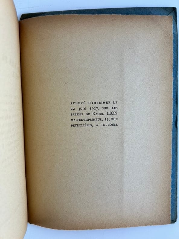 Paris aux éditions des Cahiers Libres. 1927. In-8°. 85 p., 1. Avec un portrait de l'auteur. Broché, couverture rempliée.