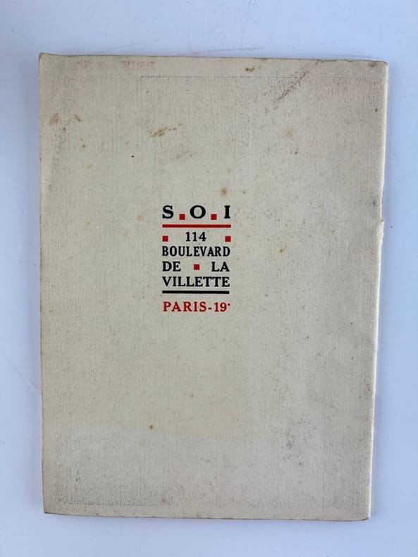 Paris Secours Ouvrier International /Imp. La Semeuse, Bergerac (1928) 13,5x18cm agrafé 31p. Couverture légèrement défraîchie au graphisme très réussi.