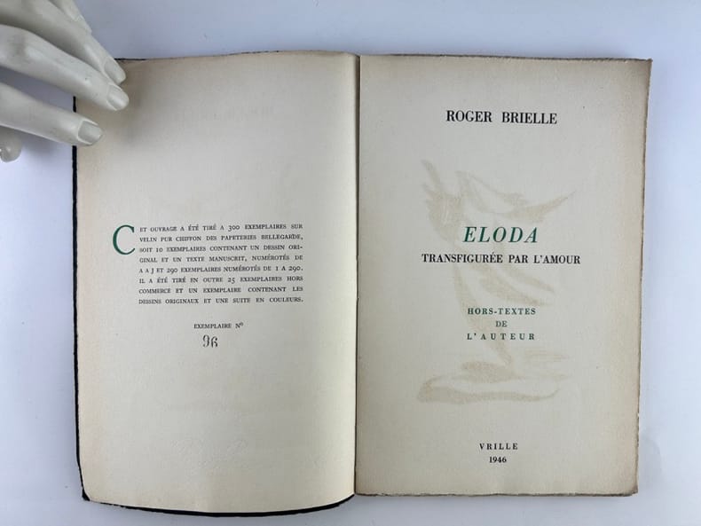 Paris Edition Pro Francia / Presses de Pierre Frazier (16,5x24,5cm) in-8 broché 60p. Edition originale justifiée à 325 ex. Deuxième volume de la collection poétique Vrille publié sous la direction d'Evrard de Rouvre. Un des 290 ex. sur vélin pur fil Bellarge.10 hors-texte en noir, typographie en deux couleurs. Intérieur de toute fraîcheur. Premier plat présentant un pli en coin. Bon état général.