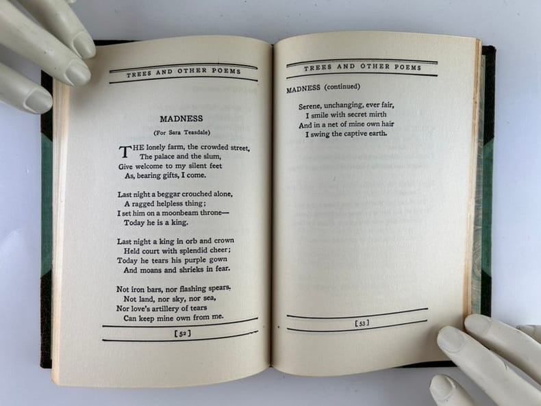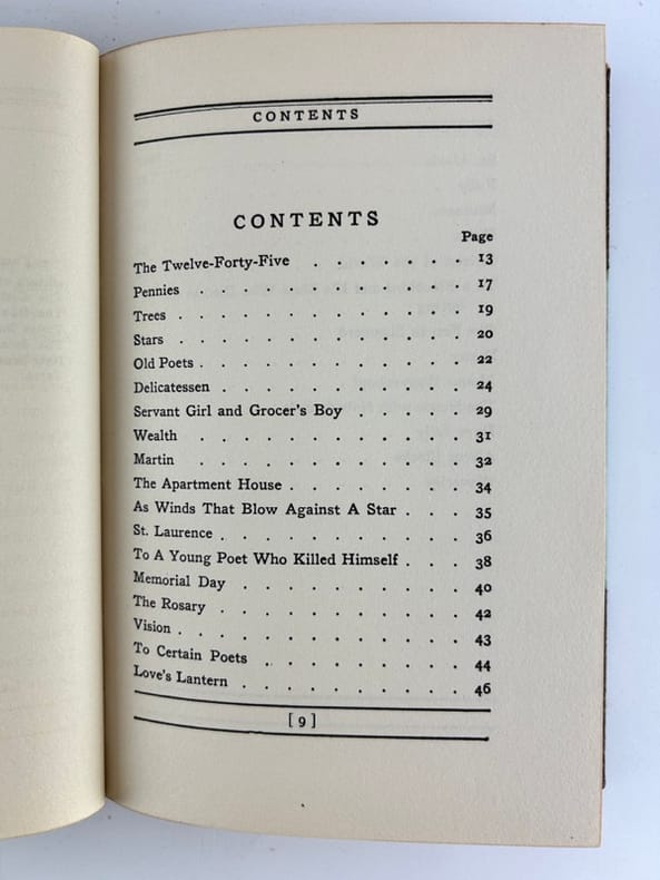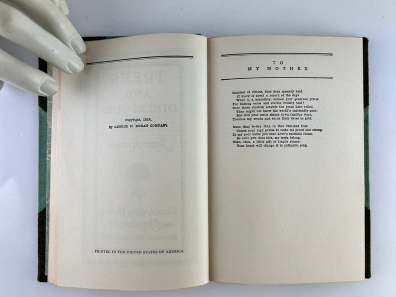 New-York Doubleday Doran and Company Inc. 1914 13x19cm half leather 75p. First edition. Bound by JAS MacDonald. Discoloration on the leather.