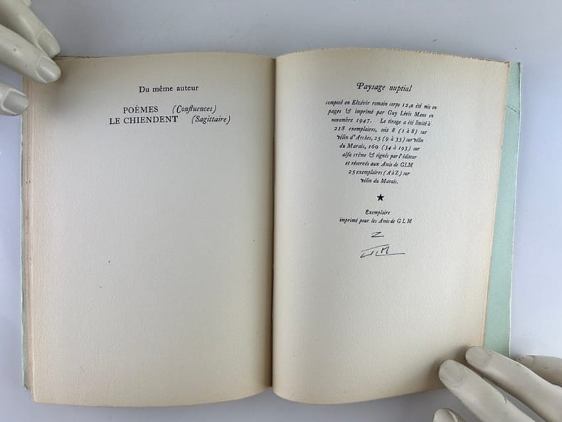 Paris GLM 1947 14x19cm broché Edition originale. Tirage à 218 exemplaires. Un des 160 exemplaires sur alfa crème signés par l'éditeur et réservés aux Amis de GLM.Non coupé. Trés bon état.