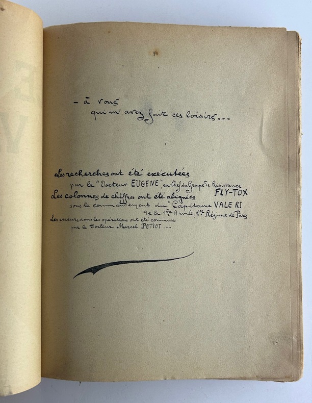 Paris I.R.A. Roger Amiard, Imprimeur-Editeur 18 mars 1946, 18 x 29,5 cm, broché, 350p. Edition originale. Reproduction en fac-similé du manuscrit publié à compte d'auteur, écrit durant son incarcération à la prison de la Santé, avec la collaboration de ses co-détenus. L'achevé d'imprimer correspond à la date d'ouverture de son procès. Tâche sans gravité sur la 4e de couverture. Bon état.