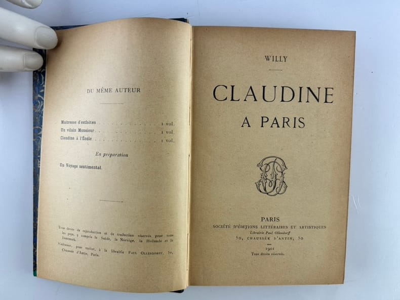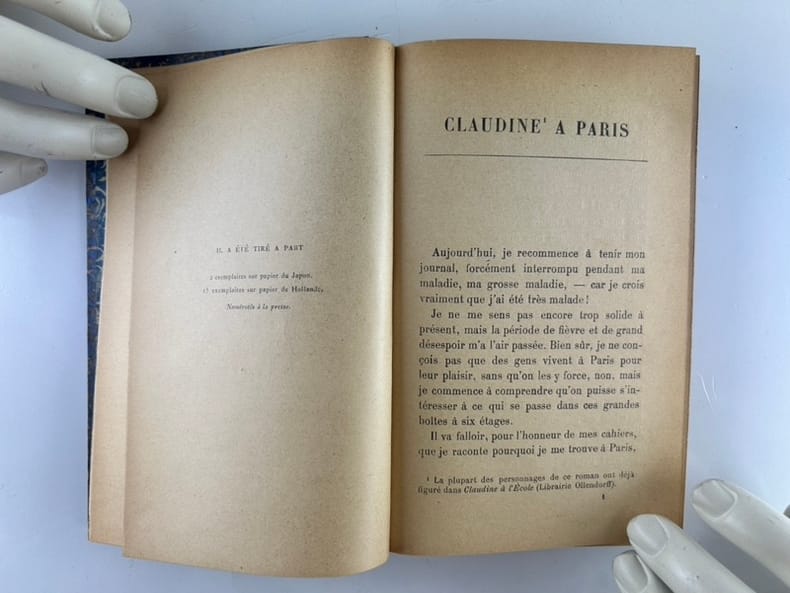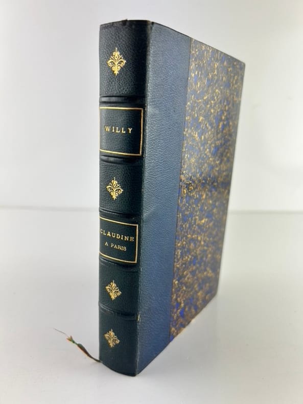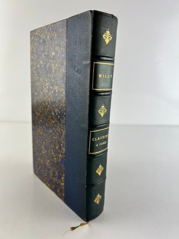 ÉDITIONS ORIGINALES sur papier dédition des "Claudine" écrite par Colette mais signée par son mari Willy. En 1893, la jeune Colette épouse lécrivain et critique musical Henri Gauthier-Villars, dit « Willy » . Il est connu pour avoir pas mal de nègres, et lorsquil découvre les talents littéraires de sa femme, il lui demande décrire ses souvenirs dadolescence qui deviendront bientôt les Claudine. Colette en parle ainsi: « Il y a des années que jai pris un tas de notes en journal, et je naurais jamais osé croire que ce fût lisible. Mais, grâce à Belle-Doucette (Willy), qui a élagué et atténué des crudités par trop claudinières, Claudine est devenue acceptable. » Et pourtant, les romans sont un véritable succès lors de leur parution mais Colette ne tire aucun profit financier de cette série qui lance sa carrière littéraire car Willy a vendu les droits à ses éditeurs, sans même prévenir Colette. Elle finit par saffranchir de cette tutelle, e; 1903 elle écrit Claudine sen va (1903) et s'en va avec son héroïne, elle divorce de Willy, Superbe exemplaire de la collection des "Claudine".
