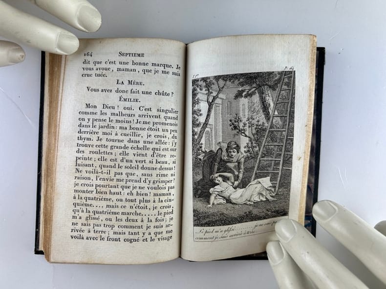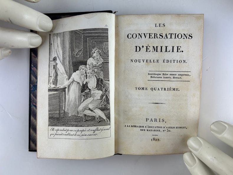 Paris Alexis Eymery : Imp. Joly, Dôle 1822, in-18 (8,5x13,9cm), élégante reliure romantique,demi-chagrin noir à dos long décorés de motifs dans le goût du temps, touches tranches dorées, XVI, 192p., 226p., 216p., 180 p. Edition en bel état de conservation complète des 12 gravures hors-textes. De rares rousseurs & marques du temps.En préambule, l'Avertissement sur la seconde édition parisienne (la première parue à Leipsick en 1774), suivi d'une Lettre de l'Auteur à l'Editeur de la première édition.