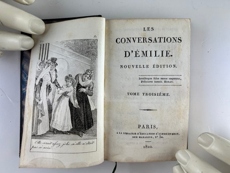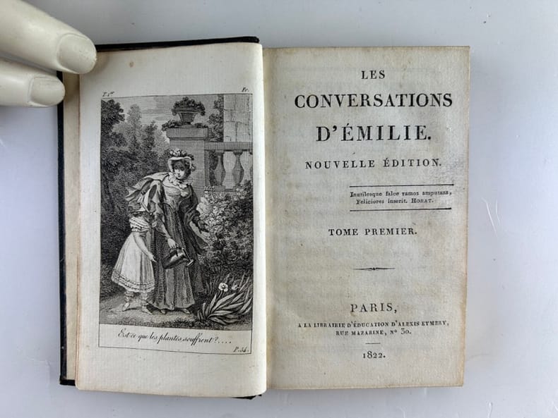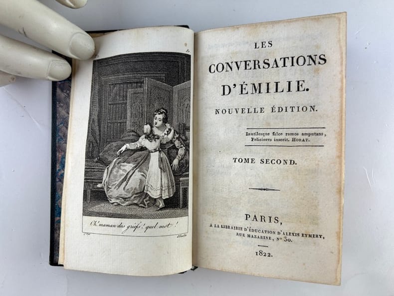En 1756, Louise d'Épinay se préoccupait déjà du thème de l'éducation dans ses Lettres à mon fils. Elle rédige Les Conversations d'Émilie à l'intention de sa petite-fille, Émilie de Belzunce, sous la forme de dialogues vivants entre une mère et sa fille. Elle cherche également à encourager les autres mères à suivre son exemple quant à l'enseignement de leurs filles, elle insiste sur l'importance fondamentale jouée par la mère dans l'éducation de celles-ci, qu'elle soit morale ou physique. Louise d'Épinay passe ainsi plusieurs heures par jour avec Émilie, et rédige les commentaires de la jeune fille, mais aussi ses questions, ses réflexions, ce qui constitue l'essentiel du texte. Elle interroge également, et remet en cause, les procédés et théories mises en place par ses prédécesseurs .Le public réserva un accueil très favorable au traité lors de sa première parution. Ses idées eurent une probable influence sur les traités de pédagogie postérieurs aux Conversations, à savoir sur les écrits d'Isabelle de Charrière, de Germaine de Staël, de Nicolas de Condorcet, d'Arnaud Berquin, d'Henriette Campan ou encore de Pestalozzi. À sa mort, ce fut Grimm qui prit alors la jeune Émilie de Belzunce sous sa protection. Source : Wikipédia