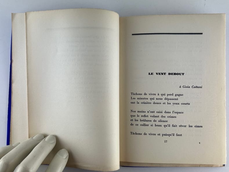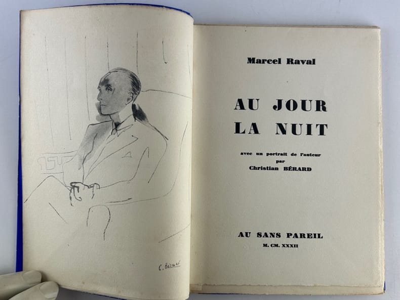 Paris Au Sans Pareil 1932, in-8, broché sous couverture rempliée bleu roi, 75p. Avec un portrait de l'auteur par Christian Bérard. Un des 100 ex. sur vélin Montgolfier, après 10 ex. sur vélin impérial du Japon. Suivent 800 ex. sur Alfa et quelques ex. de collaborateurs signés par l'éditeur. Non coupé, à toutes marges.