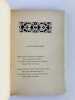 Chez Edouard-Joseph, 1920. L'un des 100 exemplaires numérotés sur papier Hollande van Gelder, celui-ci le n° 1. Large in-8 broché à grandes marges non rognées (19,5 x 18,5 cm), couverture imprimée en noir et en lettres dorées, 189 pages. ///// Anatole FRANCE (Paris 1844 - Saint-Cyr-sur-Loire 1924) était un écrivain français qui a reçu le Prix Nobel de littérature en 1921. Il fut lun des plus importants critiques littéraires et devint lune des consciences les plus significatives de son temps, sengageant en faveur de nombreuses causes sociales et politiques du début du XXe siècle. Publié en 1873, "Les poèmes dorés" est le premier recueil de poèmes d'Anatole FRANCE / - 400g. CR. - Intérieur bien frais, bon exemplaire.
