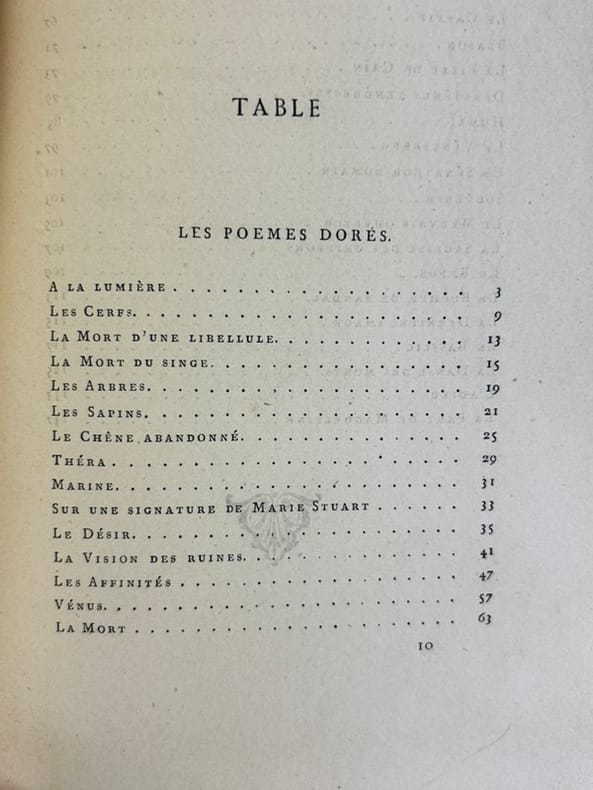 Paris Alphonse Lemerre 1929 In 12 Demi basane à coins . Dos à 5 nerfs avec fleurons dorés , filets dorés , auteur et titre . Tranche de tête dorée . Imprimé sur bon papier bien blanc avec gravures en-tête , cul de lampe et tranches non rognées hormis celle de tête . Portrait gravé de l'auteur en frontispice . Poémes dédiés à Leconte de Lisle . ( Voir nos autres ouvrages sous même reliure en tapant l'éditeur dans mot-clé ) . Poésie . - 292 p. , 490 gr.