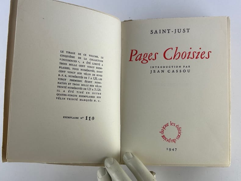Paris Les Editions du Point du Jour, Collection Incidences n°5 1947, 14,5 x 19,5 cm, broché sous couverture rempliée, 324 Tirage de tête, un des 120 ex. sur vélin de Rives B.F.K. (dont 20 nominatifs); suivent 3000ex. sur vélin teinté et 80 ex. H.C. Petit accroc au dos. Exemplaire à toutes marges, de toute fraîcheur.