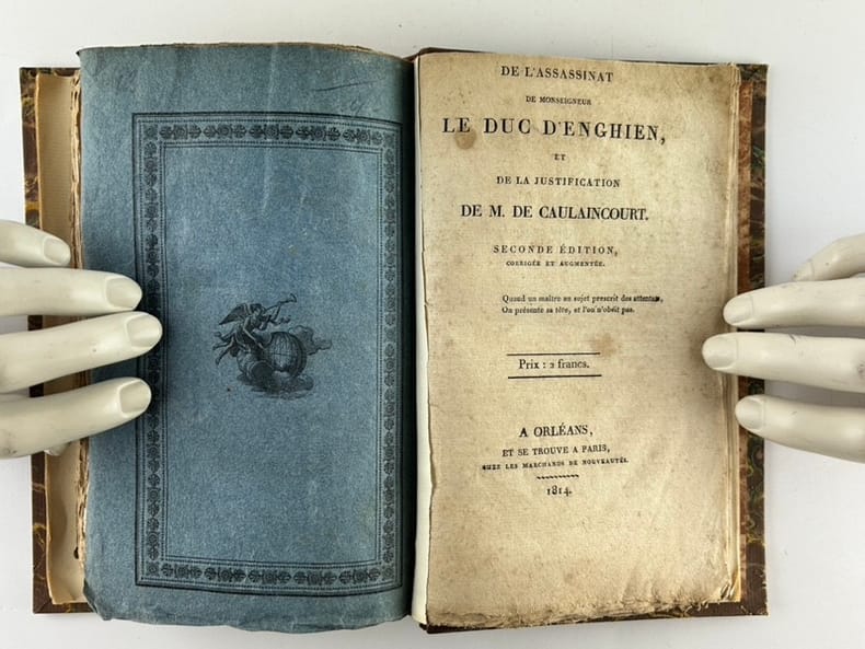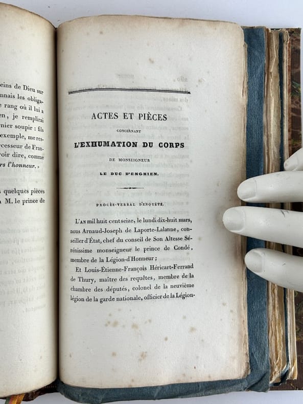 Paris 15x23cm, demi-basane raciné, dos à nerfs, Le premier texte contient en appendice sur 85 pages de nombreux documents et pièces relatives à l'affaire. Bon état général.