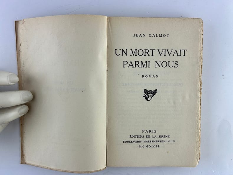 A la Sirène, 1922. Format : 19/12. Pages : 262. Avec un envoi de Jean Galmot. Première édition (mention 4e édition fictive). Couverture défraîchie intérieur bon état
