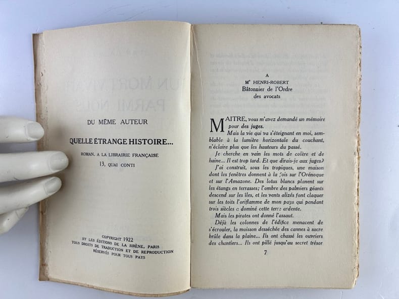 Paris; Aux Éditions de la Sirène, 1 volume broché de format 19 x 12 cm, 1 portrait en frontispice, 263 pages, 1 carte dépliante de la Guyane, rousseurs éparses, bon état. Frais de port en supplément.