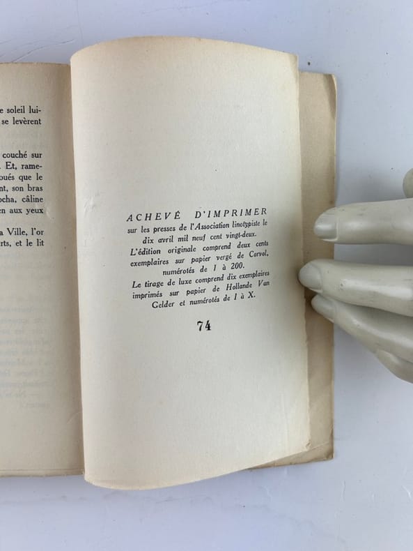 Paris Editions de la Sirène 1922, in-12, broché, 262p; Edition originale. Un des 200 exemplaires sur vergé après 10 ex. sur Hollande. Bel exemplaire.