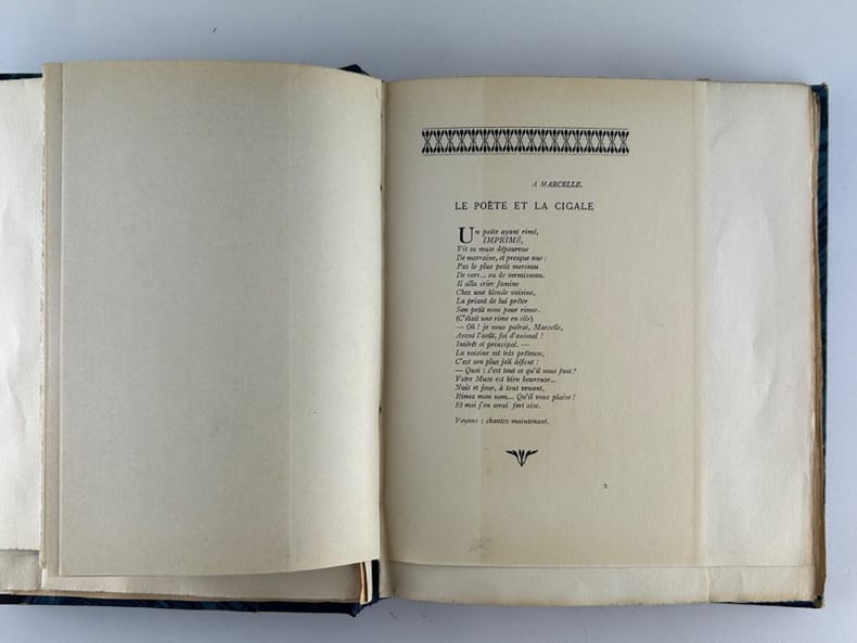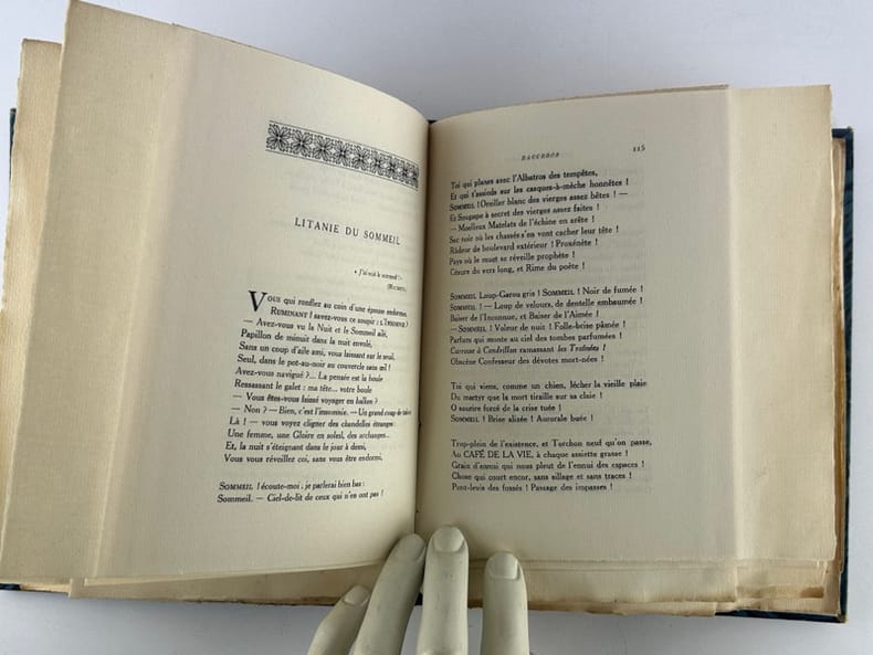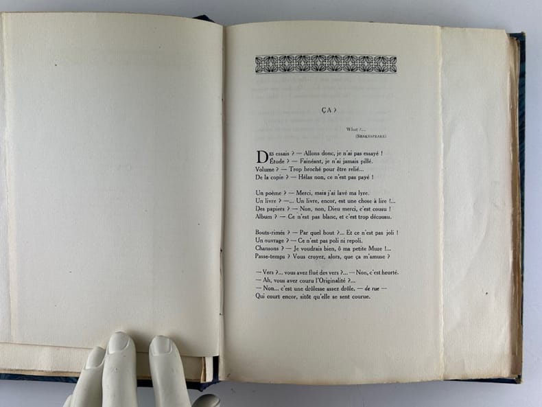 Paris Albert Messein Editeur 1931, 17 x 21,5 cm, demi-reliure toilée, dos long pièce de titre cuir, plats de papier marbré, 293p. Couverture conservée. Portrait et Autographe dépliant en fac-similé. Un des 500 ex. numérotés papier vergé d'Arches. Texte orné de bandeaux et de culs-de-lampe. Ex. à toutes marges. Bel état.