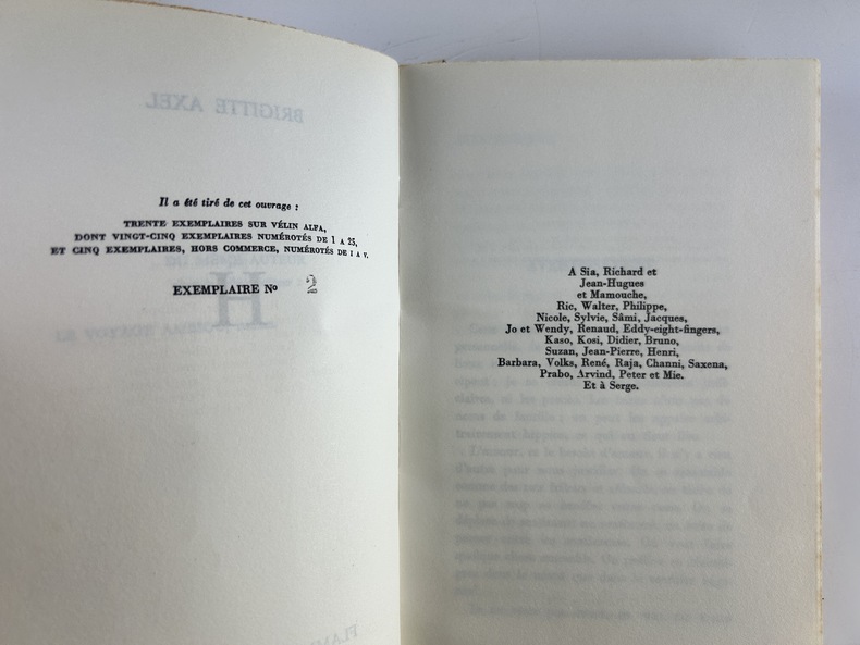 Paris Flammarion 23 janvier 1970, in-8 (12,5x19,5cm), broché, 256p. Edition originale. Tirage de tête. Un des 30 exemplaires sur Vélin Alfa. n°2. Seul grand papier. Dos ridé résultant d'un problème de fabrication. Rousseurs de 1mm sur les tranches.