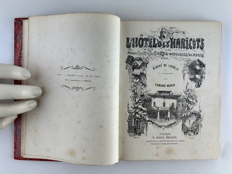 Lasalle s'est particulièrement intéressé aux cellules 7, 8 et 14 réservées aux artistes. Alexandre Dumas fils y écrivit un roman, Alfred de Musset une poésie, Honoré de Balzac, Leconte de Lisle et Théodore de Banville y ont séjourné. (WIKIPEDIA) Ancienne prison de l’ancienne garde nationale. — Primitivement ce local, sur l’emplacement duquel a été bâtie, en 1843, la bibliothèque Sainte-Geneviève, fut affecté au collège Montaigu surnommé plaisamment « le collège des haricots » par allusion à la maigre cuisine qu’on y faisait ; car le jeûne y était en permanence. (V. Rabelais, Gargantua, l. 1, ch. XXXVII) Le collège des Haricots fut supprimé en 1792 et ses bâtiments servirent de prison militaire et de prison de la garde nationale pendant la Révolution. (A. de Lasalle, l’Hôtel des haricots) Après la Révolution, l’Hôtel des haricots émigra à l’hôtel Bazancourt, rue des Fossés Saint-Bernard, et fut enfin transféré, vers 1838, rue de Boulainvilliers, en face le pont de Grenelle ; c’est là qu’il s’éteignit avec la garde nationale. (Source : Argogi)