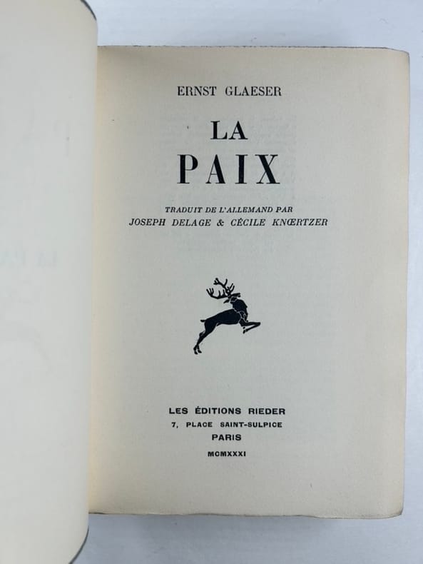 Paris Editions Rieder / Coll. Europe 14 mars 1931, in-12 (12,5x18,5cm), broché, 383p. Ediition originale française. Tirage de tête. Un des 60 ex. sur Vélin de Rives à la forme après 10 ex. sur Japon. Parfait état.