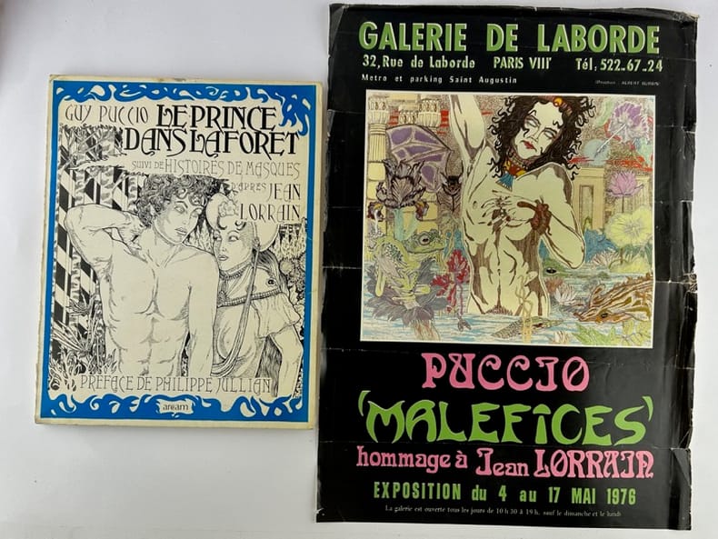 Paris Editions ARCAM 1977, in-4, broché, np. Joint l'affiche de l'exposition "Puccio - Maléfices - Hommage à Jean Lorrain" 1976 (état moyen).