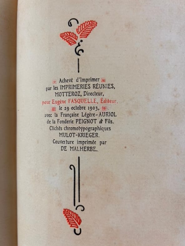 Paris Eugène Fasquelle 1913 14x20cm pleine toile éditeur 353p. Impression soignée en deux couleurs tirée sur vergé. Rousseurs sur la couverture et le premier feuillet sinon bel exemplaire orné de nombreuses illustrations.