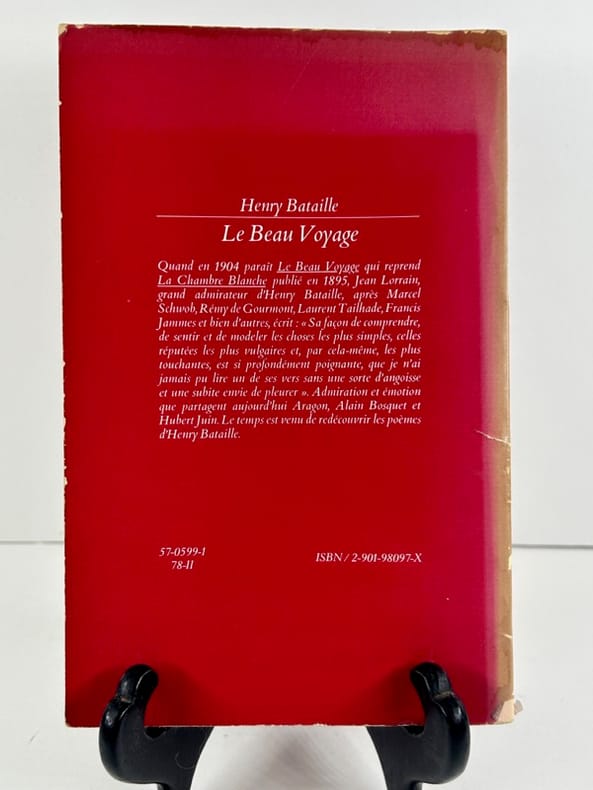 Édition originale , rare enrichie d'un bel envoi de l'auteur. " à Suzanne, en souvenir du cher disparu et avec tout le cœur fidèle". L'un des plus importants recueils poétique du siècle dernier Le Beau voyage rassemble l'essentiel de la production en vers de l'auteur très bel ouvrage , bel état intérieur , demi-chagrin à coins d'époque, 190x120, dos à nerfs , couvertures conservées, tranche de tête dorée, 254 pp Paris, Eugène Fasquelle, 1904 ref/210