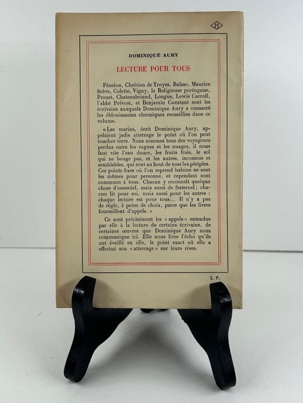 Paris, Gallimard, coll. Blanche, 1958, in-8, broché, 235p. Exemplaire du service de presse. Très bon état, non coupé. "Jugeant la situation des lettres françaises aussi inquiétante que celle de la musique avant la guerre, et soucieux d'associer la jeunesse à l'effort de rénovation qui selon eux s'impose, d'anciens J.M.F. viennent de créer, à l'image des Jeunesses musicales, les Jeunesses littéraires de France. Comme son aîné le nouveau mouvement s'attache en premier lieu à redonner ou à entretenir chez les moins de trente ans, d'où qu'ils viennent, le goût du livre. Supposant aux formes douteuses de littérature, à tout système, ainsi qu'au " stakhanovisme " littéraire - douze mille ouvrages ont été édités en 1953 ! - les J.L.F. chercheront, en collaboration avec les auteurs et leurs aînés, a définir cette jeunesse sur les préoccupai ions de laquelle on se méprend si souvent. Un sondage est effectue à cet effet auprès des adhérents pour savoir quels genres de livres et quels auteurs ont leur préférence. Il semble qu'écrivains et éditeurs attendent beaucoup de cette consultation. Des foyers seront créés dans les établissements scolaires, dans les entreprises et chez les libraires, afin de susciter des débats, de faire rencontrer des auteurs au jeune public, d'intéresser ce dernier au mouvement littéraire et de lui faire préciser ses goûts et ses aspirations." (Le Monde, 2 décembre 1954).