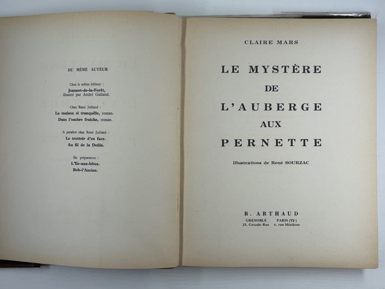Paris B. Arthaud 1946, in-4, reliure éditeur sous jaquette, 142p. Avec une belle franchise, la lettre de Claire Mars explique que cet ouvrage a été écrit pour pallier l'absence de publications divertissantes destinées au jeunes lecteurs de l'époque. Cet exemplaire a été offert à René Bailly pour qu'il le fasse connaître plus largement. Bon état.
