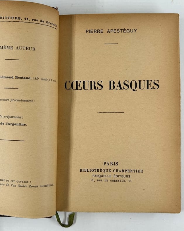 Paris. Bibliothèque Charpentier. 1933. 187 pp. In-12. Broché. En bon état. 1 volume. EDITION ORIGINALE.Exemplaire ENRICHI D'UN ENVOI AUTOGRAPHE SIGNÉ de l'auteur : "au père spirituel des plus grands artistes d'aujourd'hui, à René Simon, en témoignage d'admiration et de solidarité littéraire".Petit exemplaire broché de cette édition originale contenant : Les Palombes ; La Mutchurdin ; L'Irrintzina ; Mes Contrebandiers.