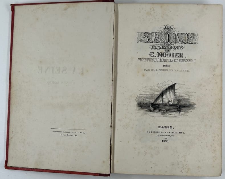 Edition originale de cette réalisation romantique, bien dans le genre de Nodier et de ses curiosités tous azimuts, mais au propos beaucoup plus moderne qu'il n'y paraît, puisque le fleuve est considéré comme un acteur de l'histoire française à part entière, modelant populations, villes et paysages, presque comme au meilleur temps des productions géographico-historiques des Annales... L'iconographie est complète et conforme à la table située à la fin du volume.Vicaire VI, 121. Escoffier, 1210. Larat, p. 69. - - VENTE PAR CORRESPONDANCE UNIQUEMENT - LIEN DE PAIEMENT, NOUS CONSULTER.