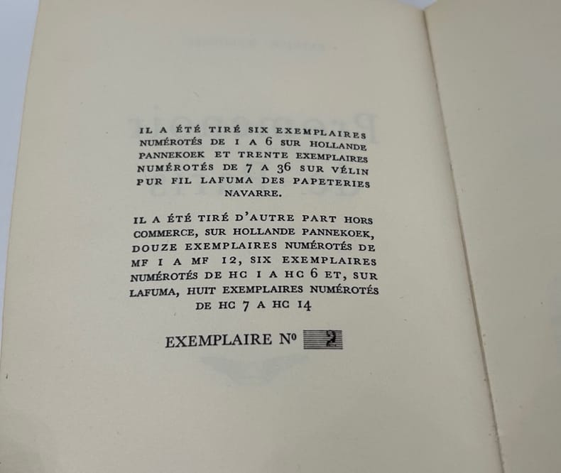 Paris Mercure de France 1960 1 vol. broché in-12, broché, non coupé, 236 pp. Edition originale. Un des 30 exemplaires numérotés sur vélin pur fil Lafuma-Navarre. Très bon état.