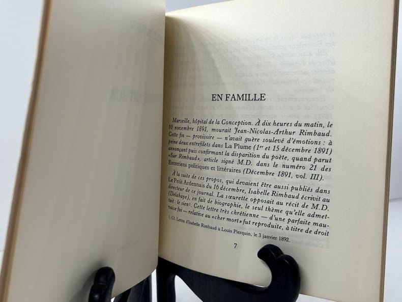 Troisième édition Paris, Mercure de France 1922. 12°. 1 f., 215 p., 4 f. Portrait d'Isabelle Rimbaud. Reliure cartonnage privée. Couvertures originales conservées.