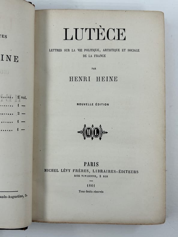 Paris Michel Lévy Frères, Libraires-Editeurs 1861, in-12, demi-reliure chagrin de l'époque, 420p. Bon état.
