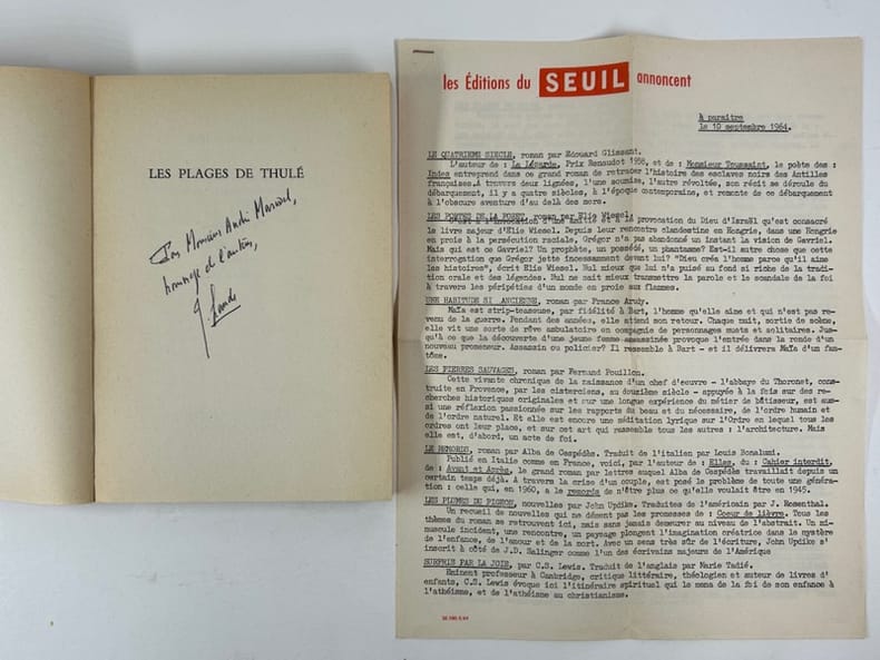 Paris Editions du Seuil 1964, in-8, broché, 146p. Exemplaire du service de presse. Joint le courrier des annonces de parutions des Editions du Seuil le 10 septembre 1964. Bon état.