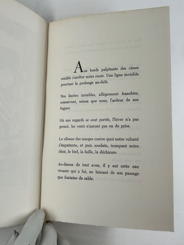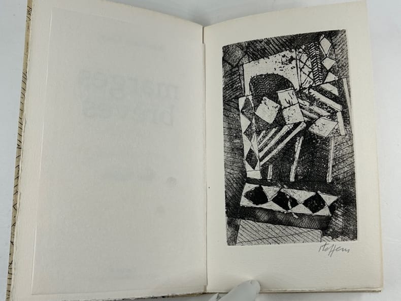 Avignon Editions Comme Si 1994, in-8, plein bradel papier, relié par Seigneur et illustré d'une gravure de H. Steffens , np Edition originale. Un des 40 ex. sur vélin d'Arches, illustré d'une gravure originale signée de Hans Steffens. Numéroté et signé par l'artiste et l'auteur. Bel état.