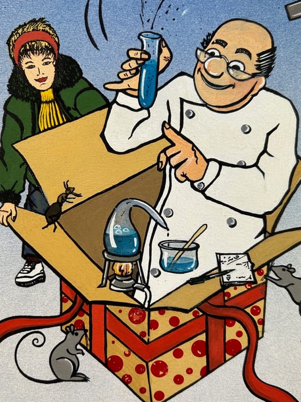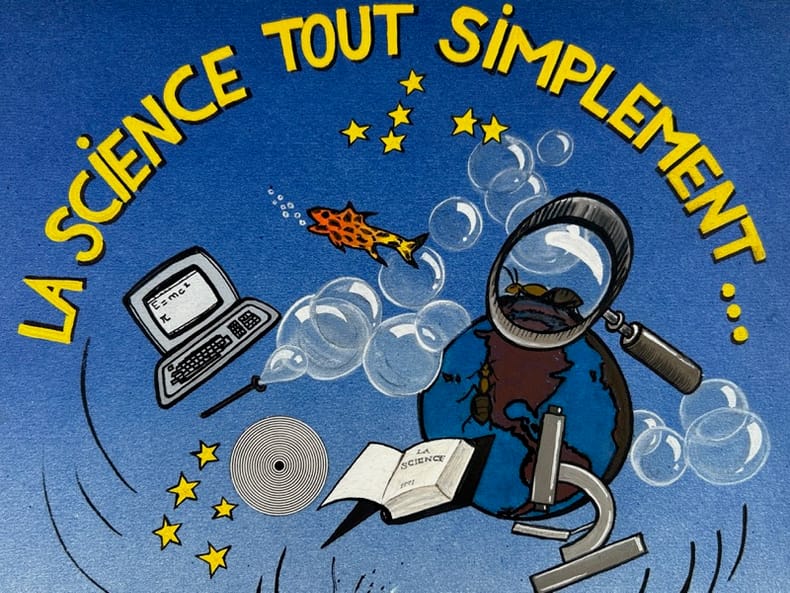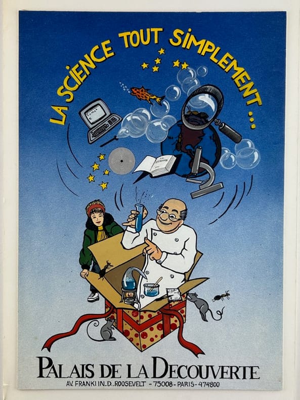 Paris Technique mixte sur carton : gouache, encre de chine, collage. 29,5 x 41,5 cm. Hubert Curien (ministre de la Recherche et de l'Espace) décide en 1991, à l'occasion du 10ème anniversaire de la création des jardins du ministère, d'ouvrir leurs portes au grand public : cette fête illustre sa volonté de rapprocher le citoyen de la science et de ses acteurs. Il y annonce le lancement, prévu pour 1992, du premier événement national célébrant la science, devenue aujourd'hui l'incontournable Fête de la Science.