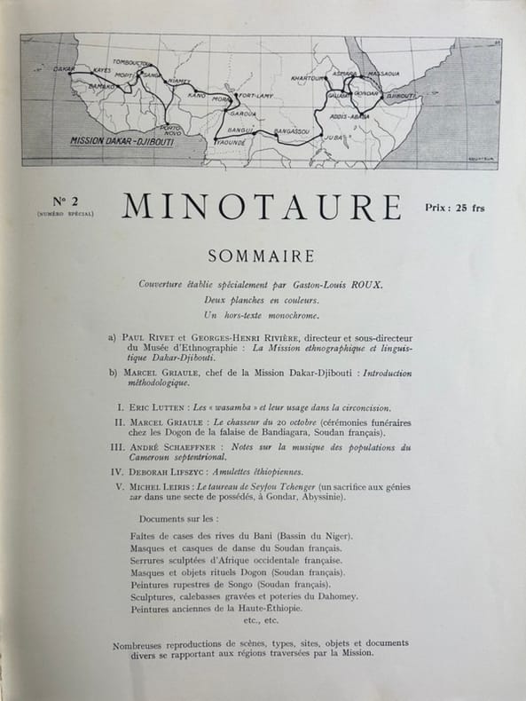 Albert Skira Paris 1933 In-4 ( 320 X 245 mm ) de 88 pages, broché sous couverture illustrée en rouge et noir par Gaston-Louis ROUX. Edition originale. Numéro entièrement consacré à la Mission Dakar-Djibouti ( 1931-1933 ). Couverture spécialement conçue par Gaston-Louis ROUX, très nombreuses illustrations dans et hors-texte en couleurs et en noir. Très bel exemplaire.