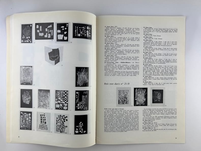 Paris Bibliothèque Nationale 21x30cm, agraphé, 24p. 107 oeuvres décrites avec notices et petites reproductions en noir et blanc. Préface de René Char. Avant-propos de Jean-Pierre Seguin et de Françoise Woimant. Catalogue par F. Woimant et Françoise de Staël. Extraits de lettres de Nicolas de Staël. Eléments bio-bibliographiques.
