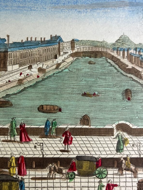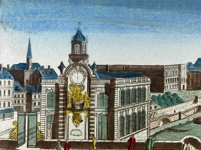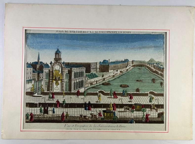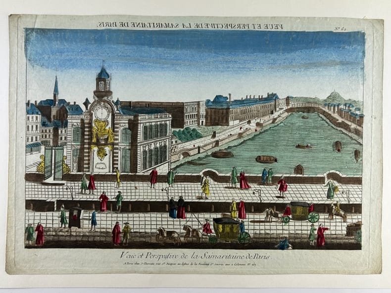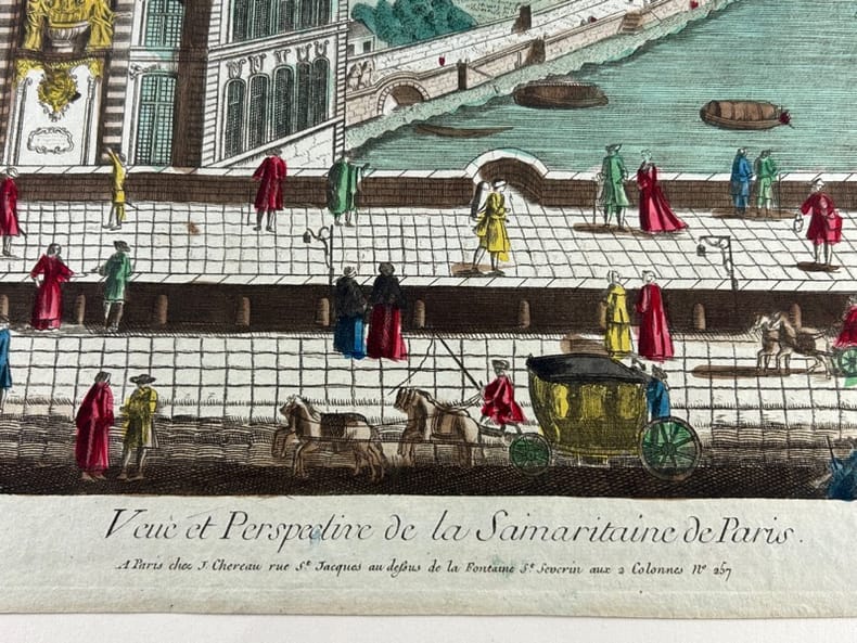 Chez J. Chereau 44 x 30,5 cm. Gravure originale, rehaussée à l'aquarelle à la main. Non datée, circa 1790. Bel état. Sous passe-partout.