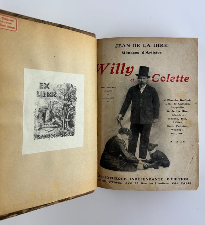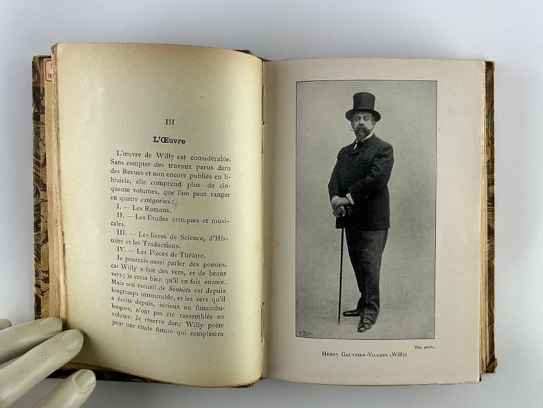 Paris Bibliothèque Indépendante d'Edition, Adolphe d'Espie 1905, 14x20cm, demi-basane, couverture conservée, 286p. Edition originale. Un portrait en héliogravure, gravures dans le texte et 26 planches hors-texte d'après J.E. Blanche, Boldini, Leal de Camara, Capiello, W. de la Hire, Léandre, Mathey, Rip, Rabier, Sem, Valloton, Widhopff, etc.. Quelques épidermures sur la reliure. La photo présente des pliures.