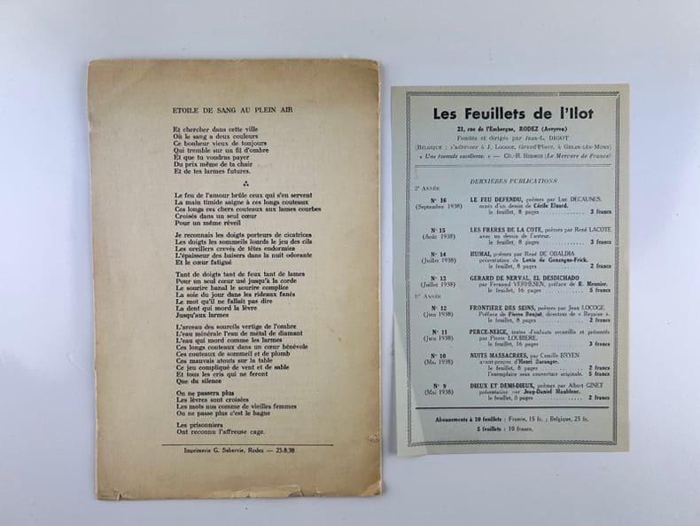 Rodez Les feuillets de l'îlot n°16 ée année / Imp. Subervie 1938, 16x25cm, en feuilles, non paginé (8p.) Bon état.