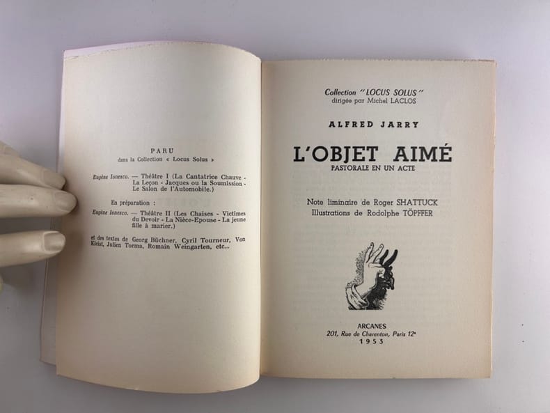 Editions Arcanes / Collection " Locus Solus " dirigée par Michel Laclos n° 2 de 1953. In-8 broché de 65 pages au format 19,5 x 15 cm. Couvertures rouges avec titre imprimé en noir. Dos carré. Plats et intérieur frais. Note liminaire de Roger Shattuck. Superbes illustrations en noir de Rodolphe Topffer. Bibliographie de ce dernier en fin d'ouvrage. Un des 100 exemplaires numérotés sur Arches du tirage de tête ( n° 25 ), après 12 hors commerce, sur offset. Superbe état général, proche du parfait. Rare dans un tel état de fraicheur et en tirage de tête.