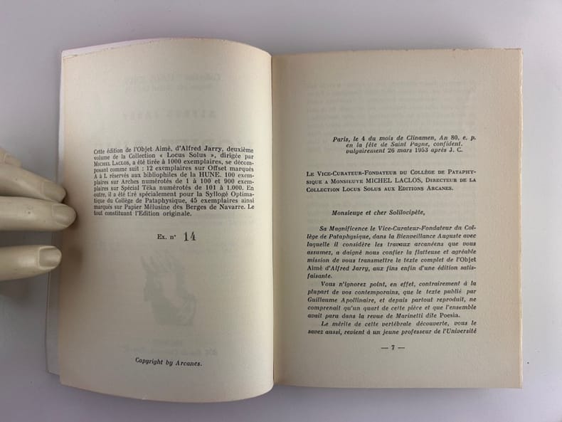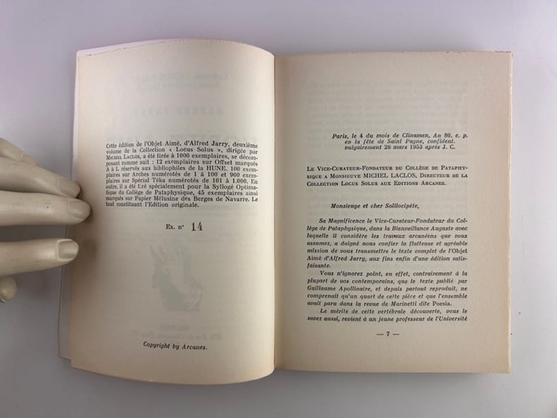 Paris, Arcanes. Collection Locus Solus., 1953, in-8, broché, 65 pages. Edition originale. 2e papier après 12 ex. sur Offset. Suivent 900 ex. sur Spécial Téka. Bel exemplaire.