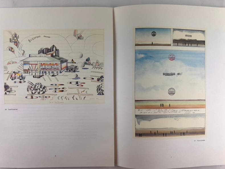 Paris, Maeght éditeur, 1980. In-folio (380 x 280 mm) en feuilles, 36 pages 24 reproductions dont 11 en couleurs : 12 de Lindner et 12 de Steinberg. Présentation d'Eugène Ionesco en anglais et en français "Saul Steinberg-Richard Lindner". Catatlogue édité à l'occasion de la double exposition à la Foire Internationale d'Art Contemporain de Paris : Exposition de 31 aquarelles de Lindner et de 39 dessins et aquarelles de Steinberg, de 1953 à 1979. Habile mise en page. TIRAGE ORIGINAL.
