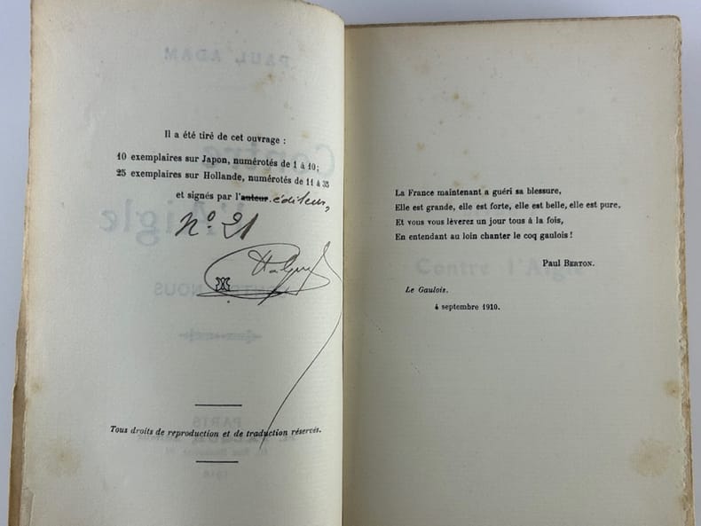 Paris H. Falque, Editeur 1910, in-8, broché, 357p. Couverture dessinée par Georges Ferdinand Bigot. Un des 25 exemplaires sur Hollande, numérotés et signés par l'éditeur, après 10 ex. sur Japon. Bon exemplaire. Non coupé.