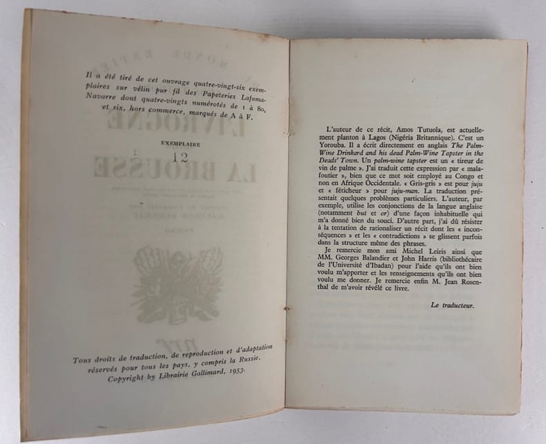 Paris Gallimard / Du Monde Entier mai 1953 Edition originale. Un des 86 ex. sur vélin pur fil Lafuma. Seul grand papier. Non coupé. Très bon état.