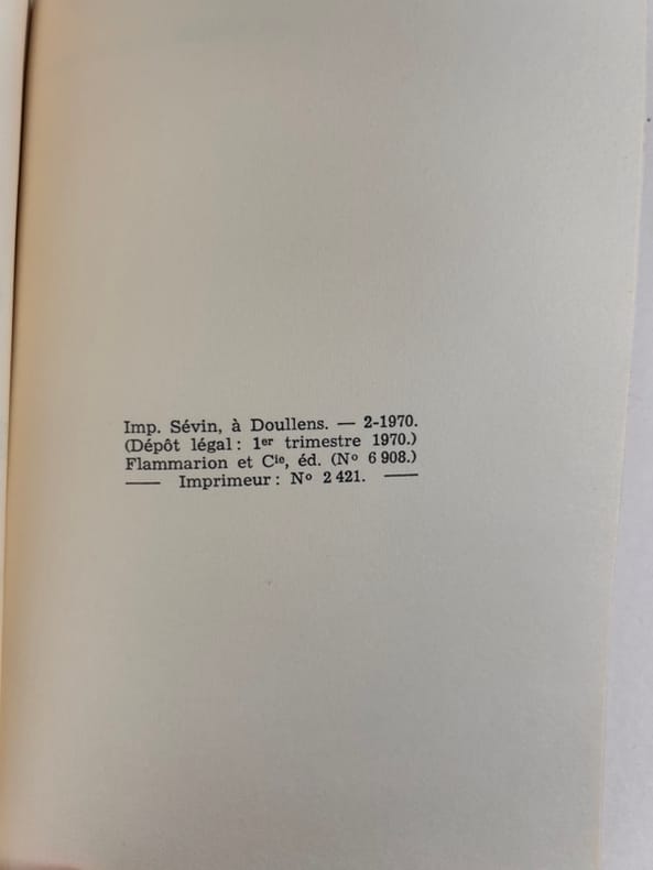 Paris Flammarion février 1970 in-12 broché 279p. Edition originale sur papier d'édition. Parfait état.