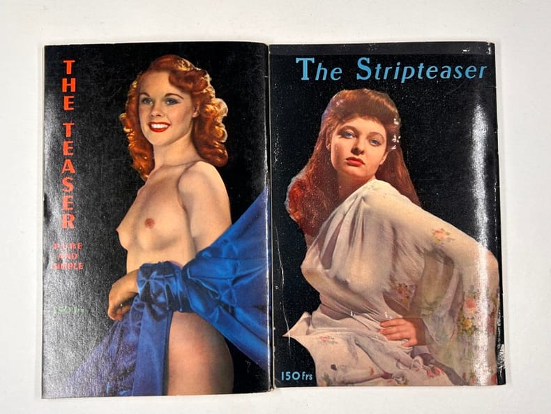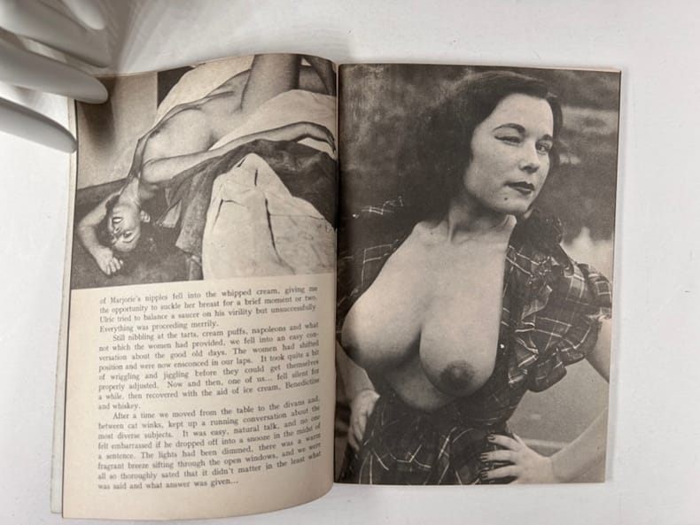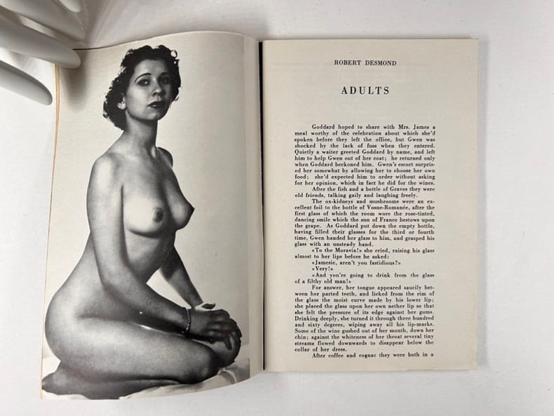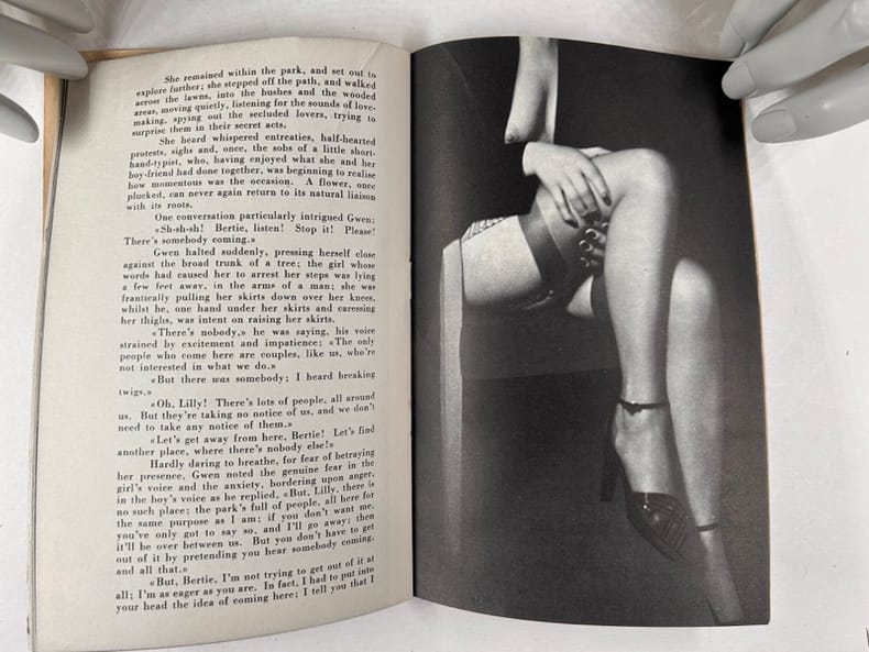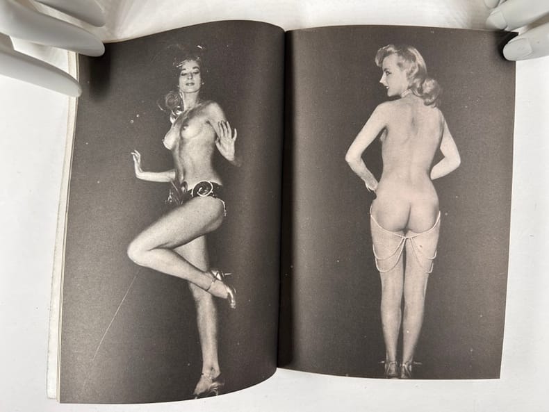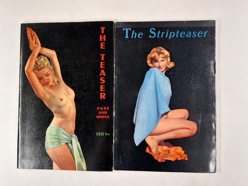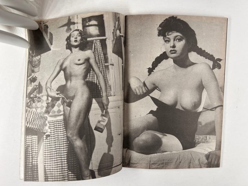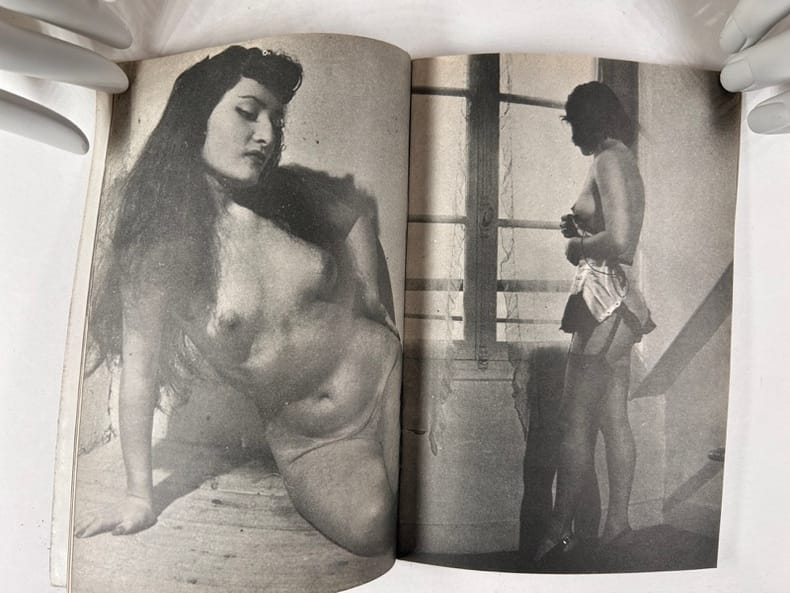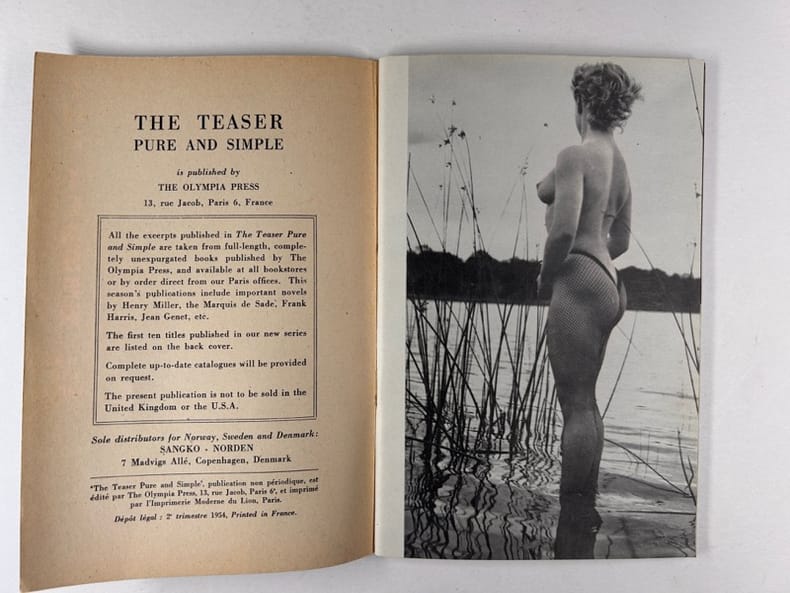 Paris, Olympia press , 1953-1954, in-12, broché, np Livrets publicitaires illustrés de photographies érotiques de qualité et d'extraits d'oeuvres publiées chez Olympia Press par Maurice Girodias. Environ 100 photos N/B. Bon état.