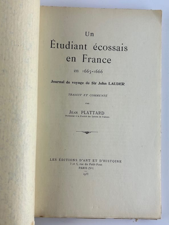 Voyage Un étudiant écossais en France en France en 1665-1666. Journal de voyage