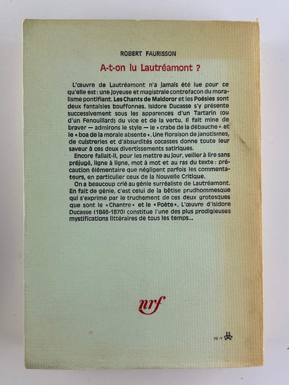 Paris, NRF 1972 1 in 12 Broché couverture rempliée 433[p.p]